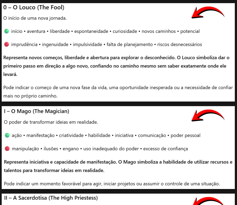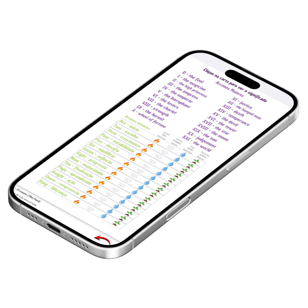 Após fazer a sua tiragem, basta abrir o guia e selecionar as cartas que tirou. Através do significado e das palavras-chave de cada carta, conseguirá compreender a mensagem do Tarot.